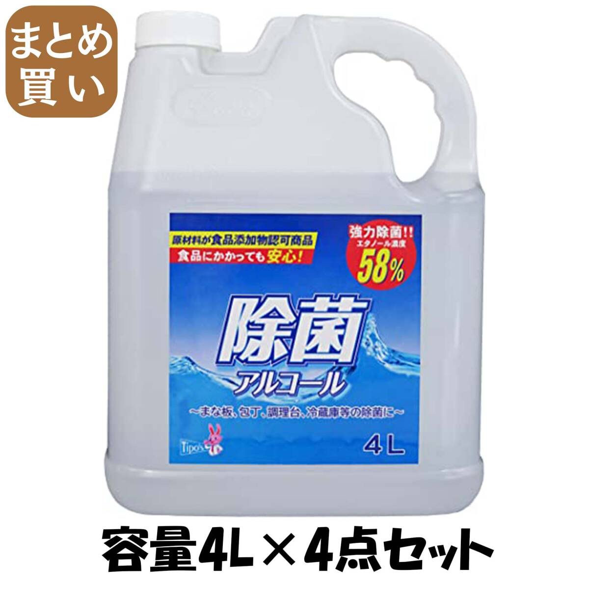- 【まとめ買い】食品添加物 除菌アルコール 4L 容量4L×4点セット 友和 消毒用アルコール