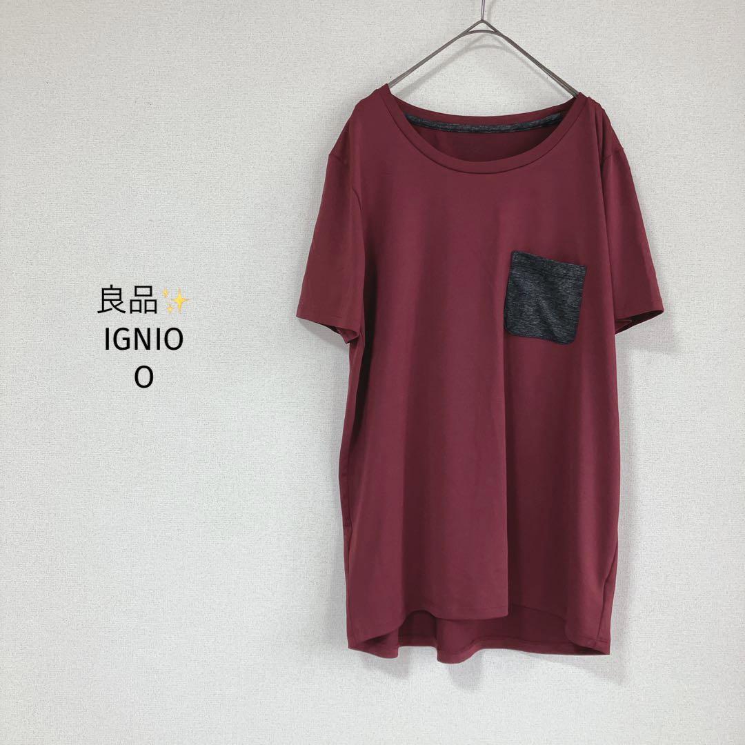 - IGNIO イグニオ Tシャツ【O】ワインレッド ポケット付 スポーツ 良品