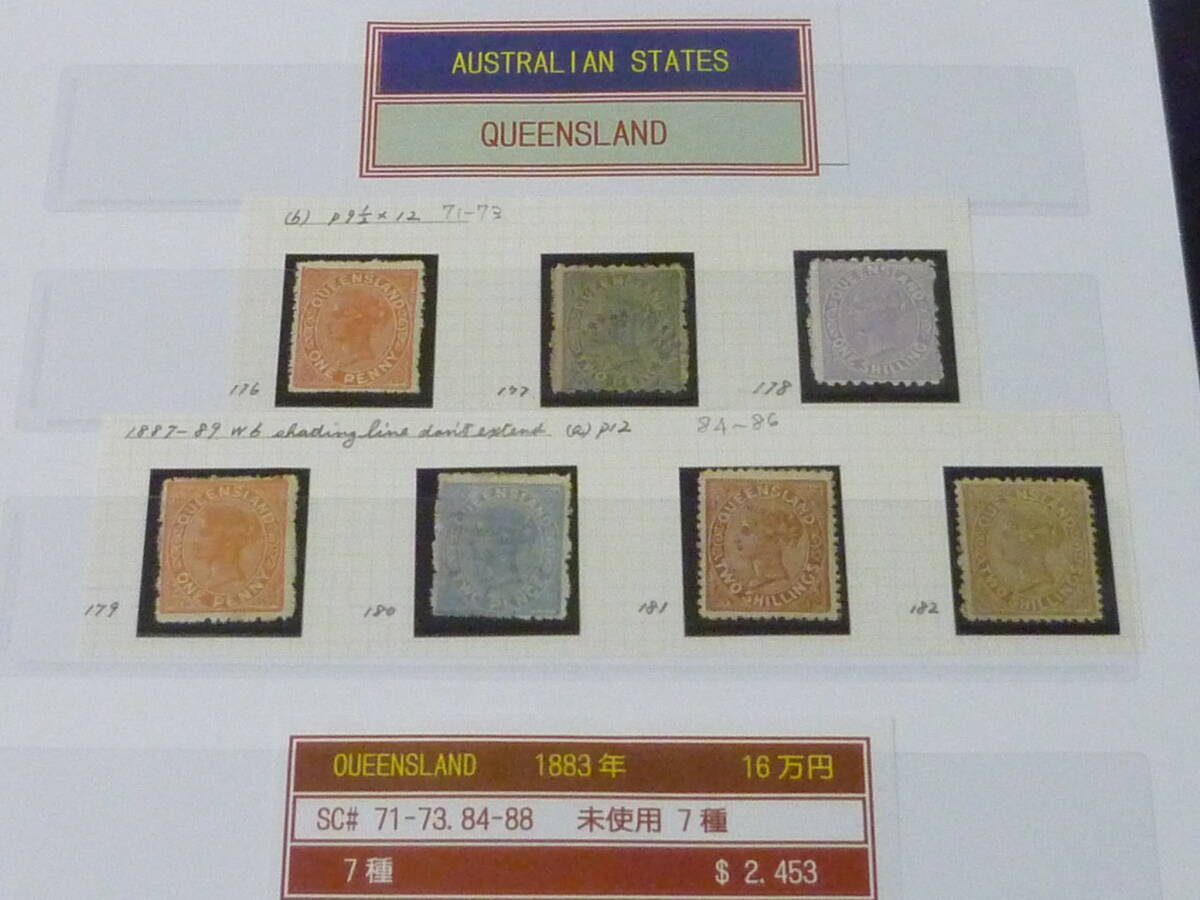 > 23L M №33 オーストラリア切手 QUEENSLAND 1883年 クラシック SC#71-88の内 計7種 未使用OH・使用済1種 【SC評価 $2,453】