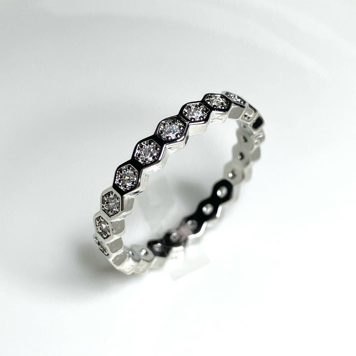 > 新品 19号 AAA CZ ダイヤモンド エタニティリング ホワイトゴールド 六角形 フルエタニティ ダイヤモンドリング プレゼント 送料無料