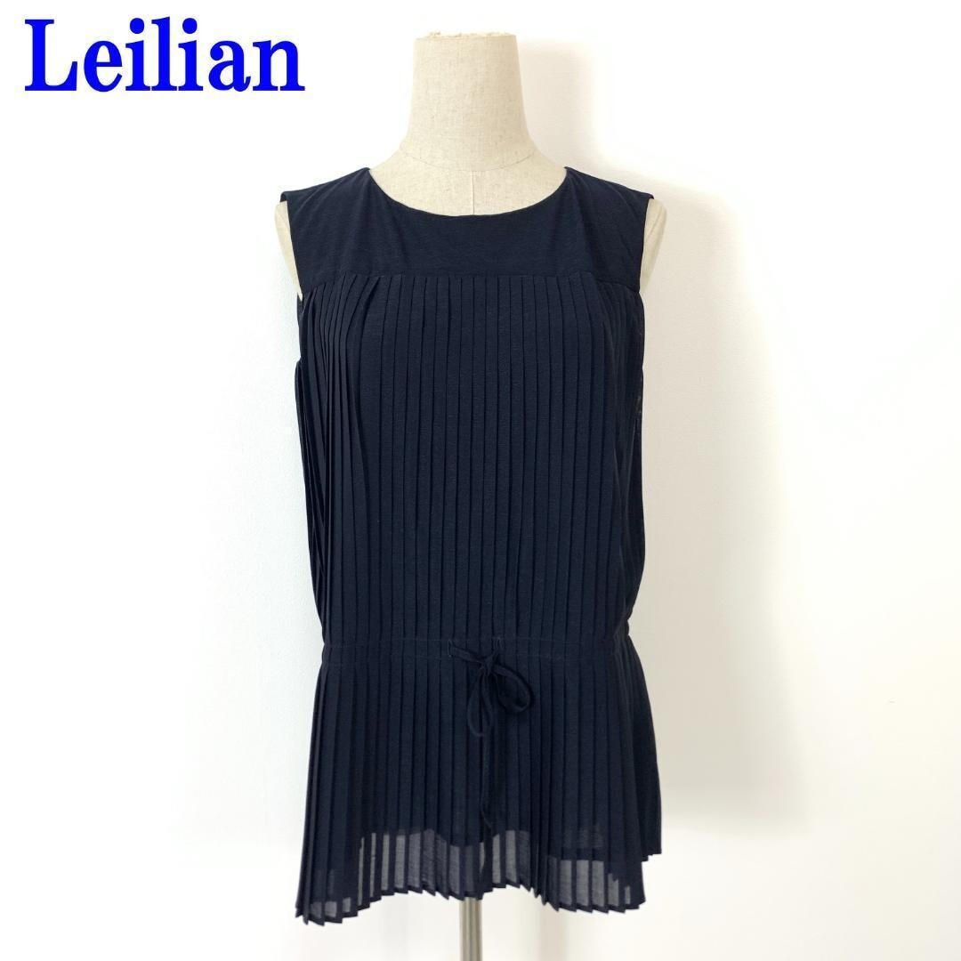 > レリアン ノースリーブカットソー Leilian ブラック プリーツ黒 ポリエステル100% 9 C2654