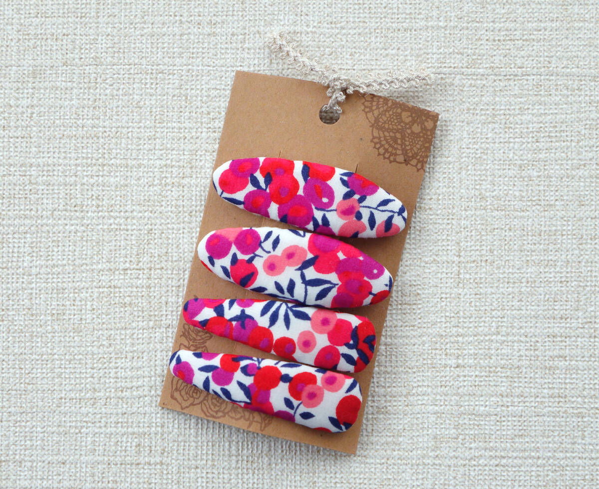 - ★ ハンドメイド リバティプリント使用 ベリー柄5㎝パッチンピン ウイルトシャー レッド ★