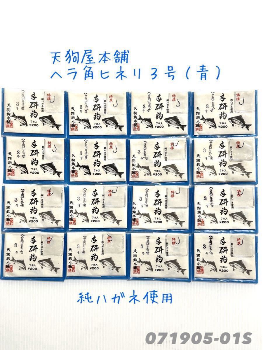 - 【新品未使用品】天狗鈎本舗 手研鈎 ヘラ角ヒネリ(青)3号 各7本入 16枚セット 希少品!