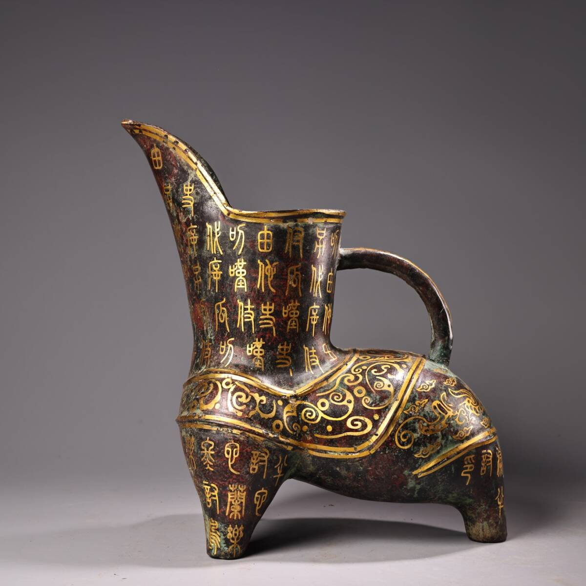 - 戰漢時代 古銅流金彫 青銅器 三脚酒杯 杯子 文案置物 極細工 古賞物 古美味 中国唐物 東洋彫刻 時代物 骨董 中国古美術
