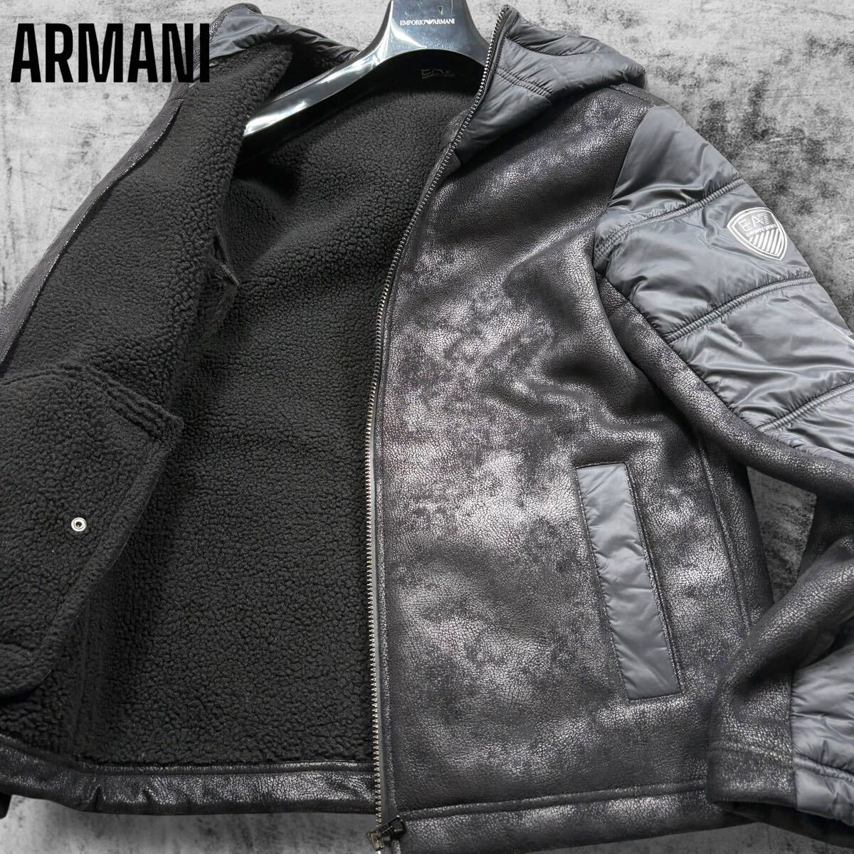 - 極美品/L相当◎ エンポリオアルマーニ EA7 Fムートン レザージャケット ライダース ナイロン切替 パーカー ブラック 黒 EMPORIO ARMANI