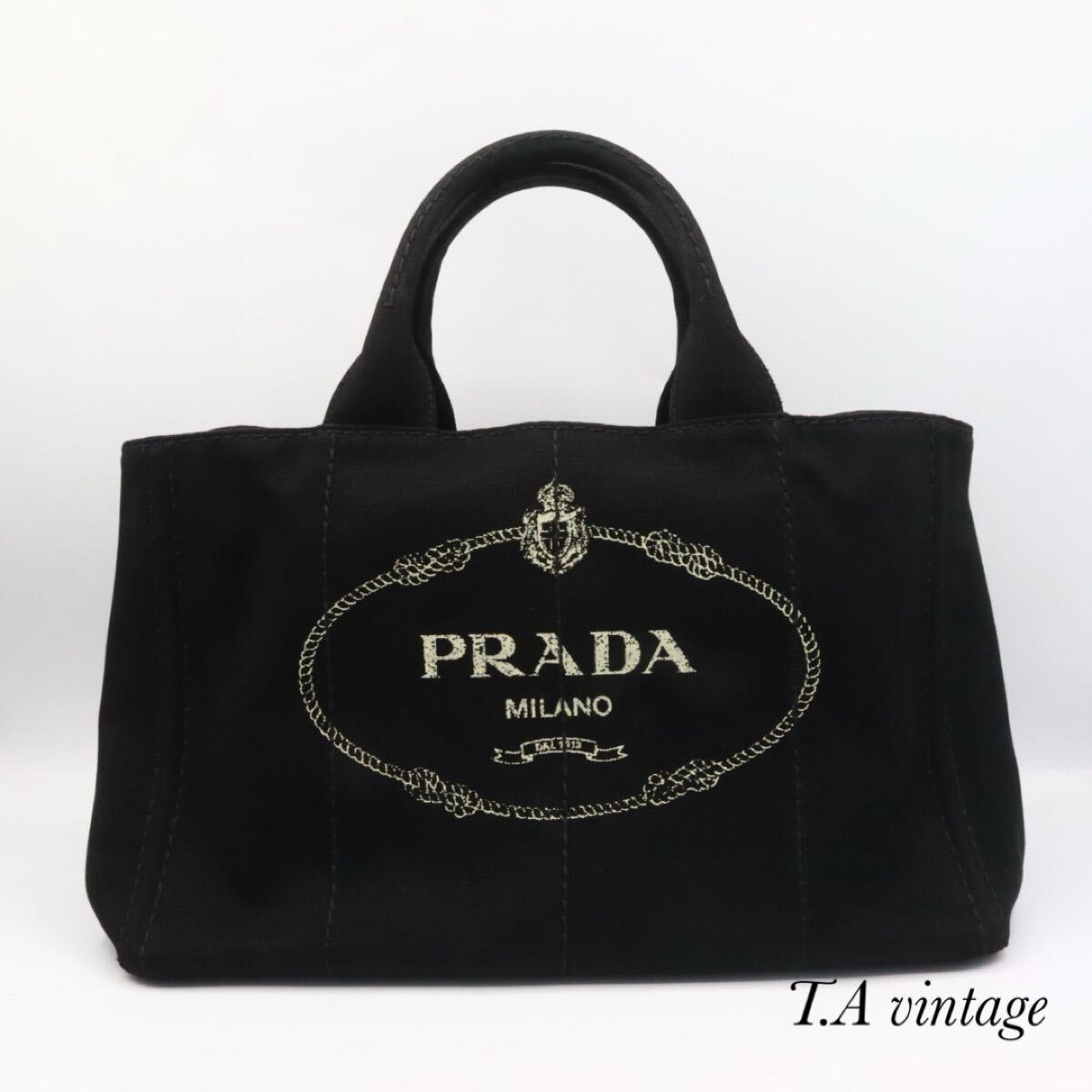 - PRADA 美品 プラダ キャンバス カナパ ハンドバッグ ブラック