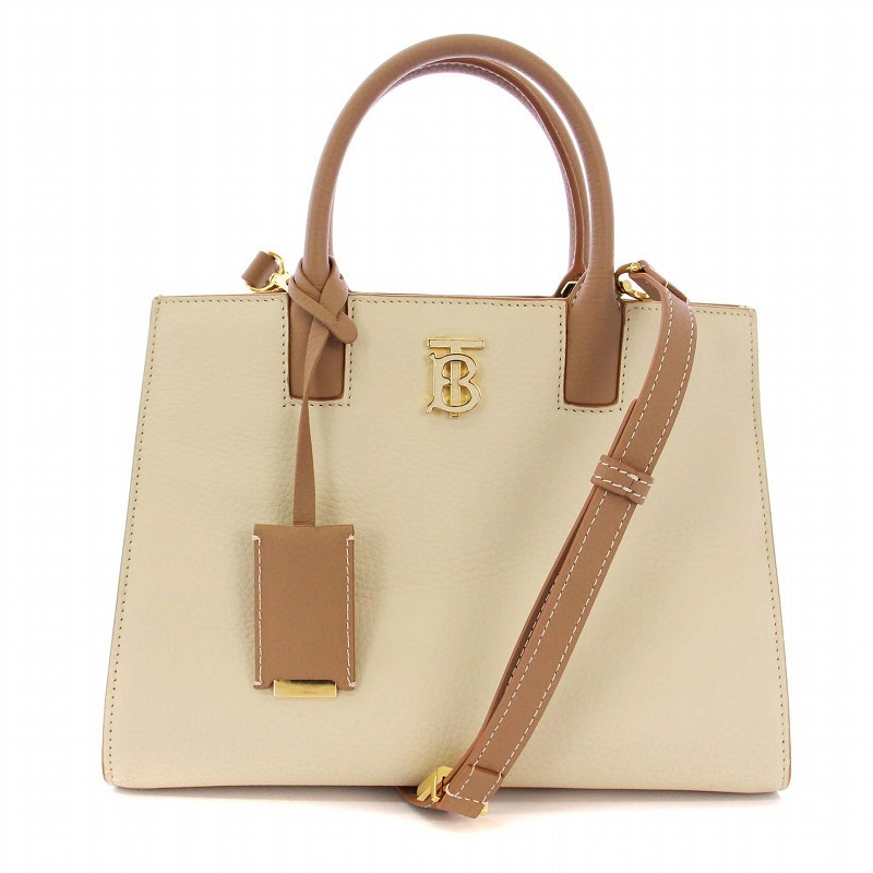 > バーバリー BURBERRY FRANCES MINI フランシスミニ トートバッグ ショルダーバッグ 2WAY レザー 白 茶 8072522 /KH レディース