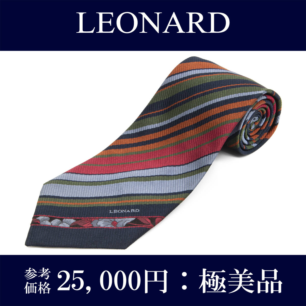 - 送料無料 レオナール ネクタイ レギュラータイ ジャガード ネイビーブルー 水色 赤 緑 ストライプ ロゴ 花 ブランド イタリア製 綺麗 N754