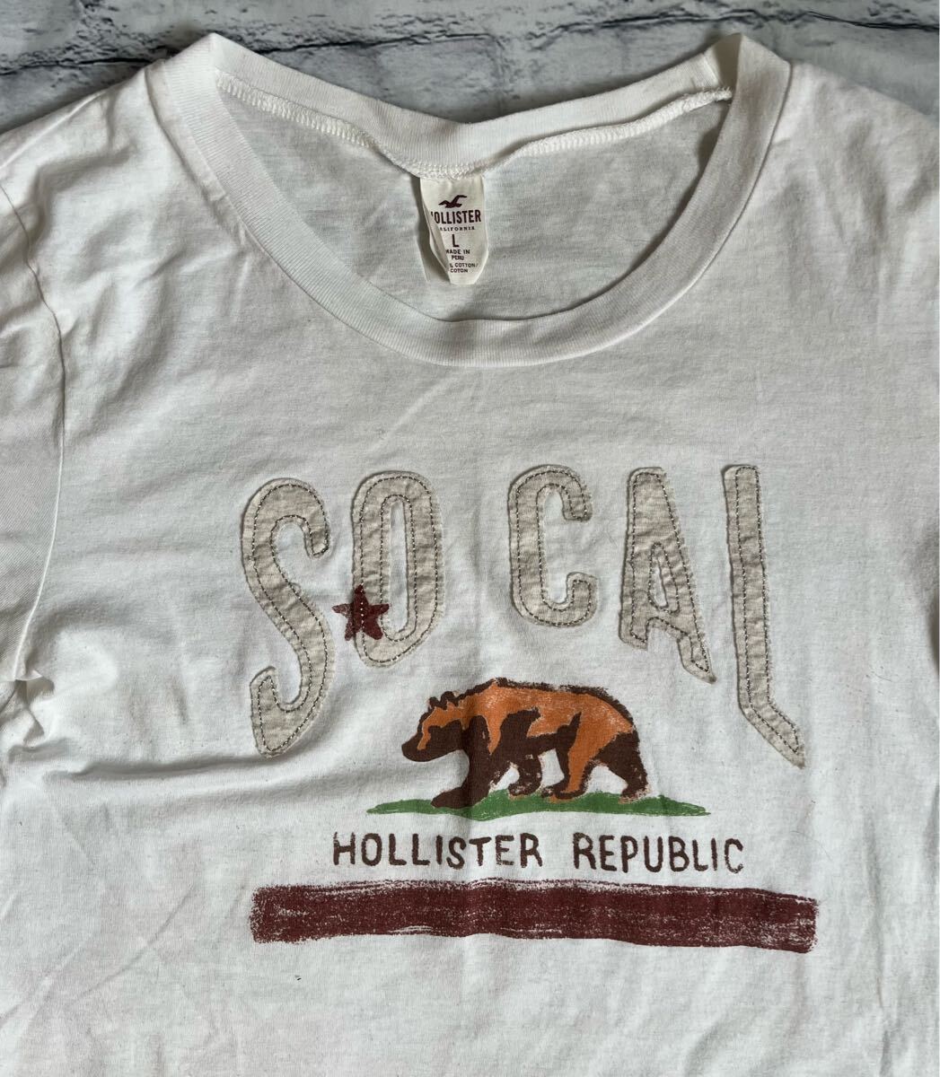 - レディースホリスター HOLLISTER プリント半袖TシャツLサイズ中古(管NO1077)