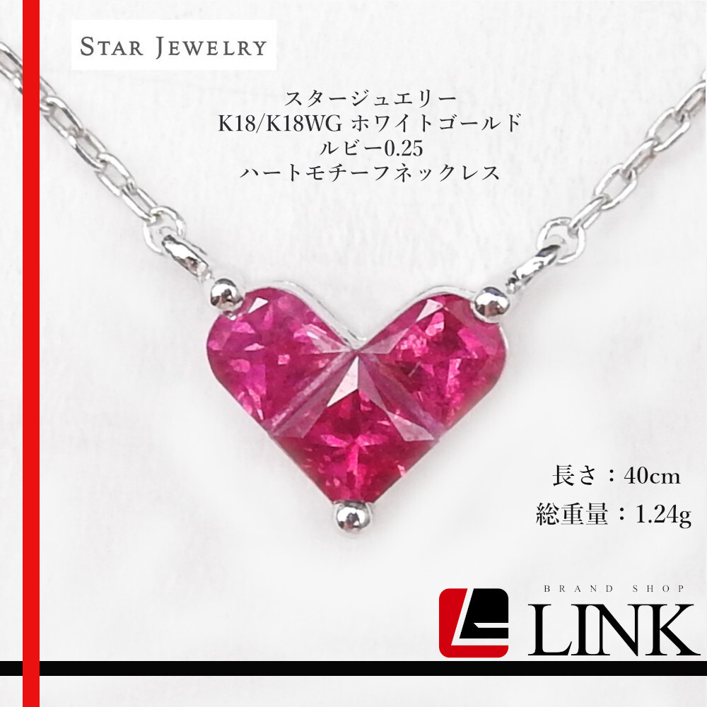 - 美品STAR JEWELRY/スタージュエリー K18/K18WG ホワイトゴールド ルビー0.25 ハートモチーフネックレス 40cm レディース