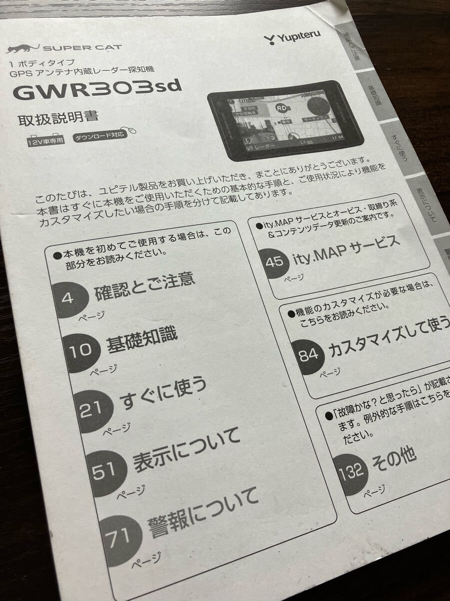 - 送料無料■■ユピテル スーパーキャット 1ボディタイプ GPS アンテナ内臓 レーダー探知機 GWR303sd 取扱説明書 説明書■■