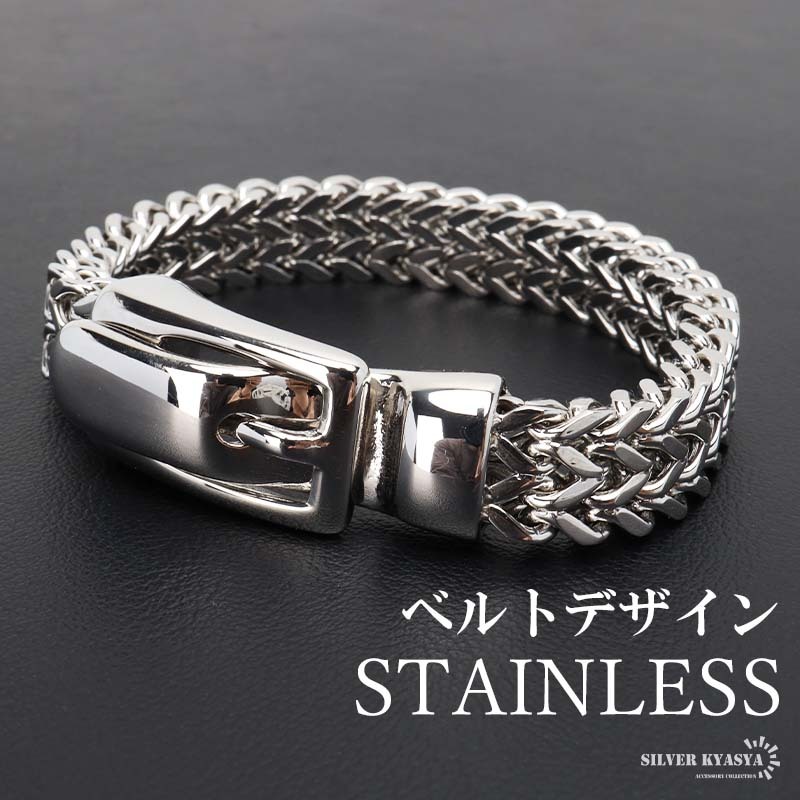 > サージカルステンレス チェーンブレスレット ベルトブレスレット ごつめ メタルブレスレット 重厚感 316L メンズ 金アレ対応