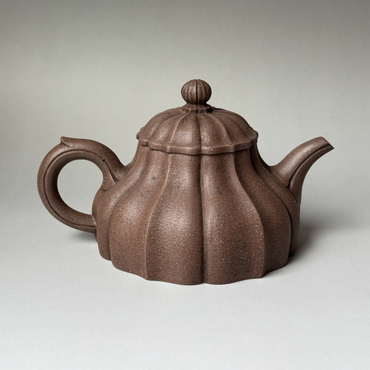 - 古陶芸 紫砂壷 明時代 【歐正春】 製 「筋紋壷」 段泥 煎茶 急須 茶道具 唐物 時代物 秘蔵 茶器 容量300cc LT-250533