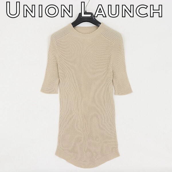 - 美品◆UNION LAUNCH ユニオンランチ コットン リブニット ショートスリーブ トップス ベージュ FREE