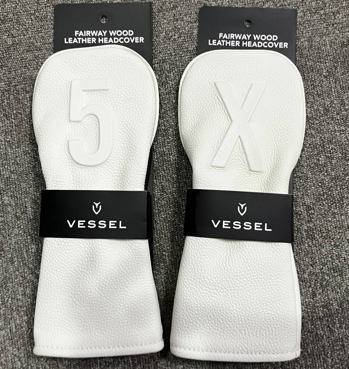 > エンボス加工でより高級感UP!VESSEL Lux Head Cover-Embossed-〈FW〉White FW#5W+XW用 新品・未使用品