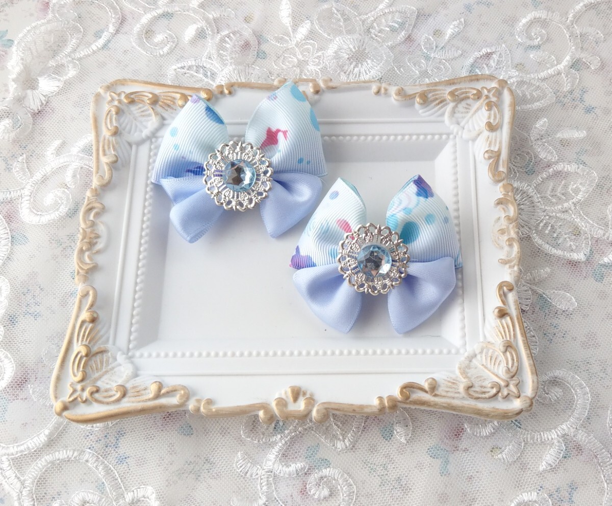 - *幼SD~SD等 1/6~1/3サイズ ドール用 ヘアクリップ ヘアアクセサリー ヘアリボン 2点セット*【Gold fish】