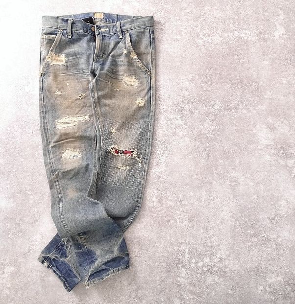 - Lee×AKM リー エイケイエム 95984 クラッシュ加工 デニムパンツ ジーンズ 日本製 ヴィンテージ加工 チェーンステッチ 耳 (XS) ●r-622