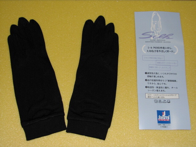 > ★★★★02101 未着用 超破格値! 在庫処分大特売! 絹100% シルク100% シルクニット 手袋 ブラック★★★★