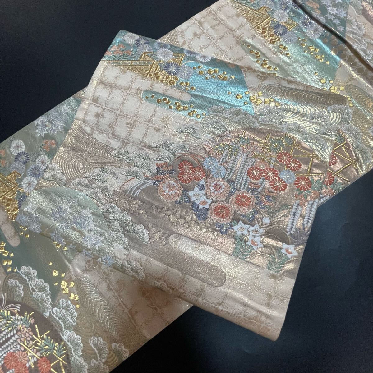 - #H076 美品 袋帯 六通 綴織 蘇州刺繍 本金箔 菊 藤 桔梗 正絹 フォーマル 和装 和服【wellriver】
