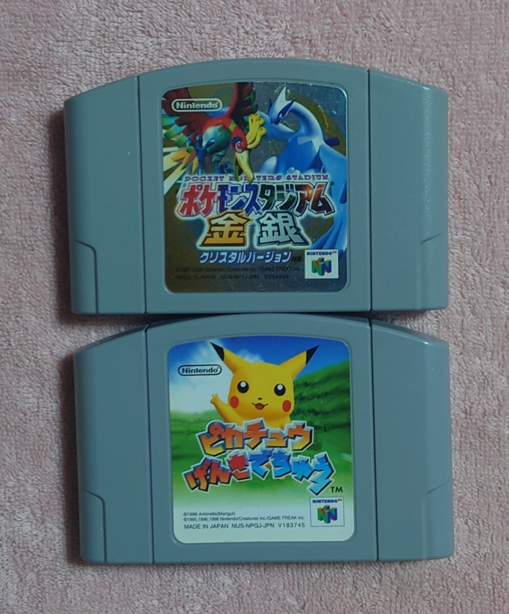 - ポケモンスタジアム金銀+ピカチュウげんきでちゅう 端子清掃、起動確認済 N64ソフト