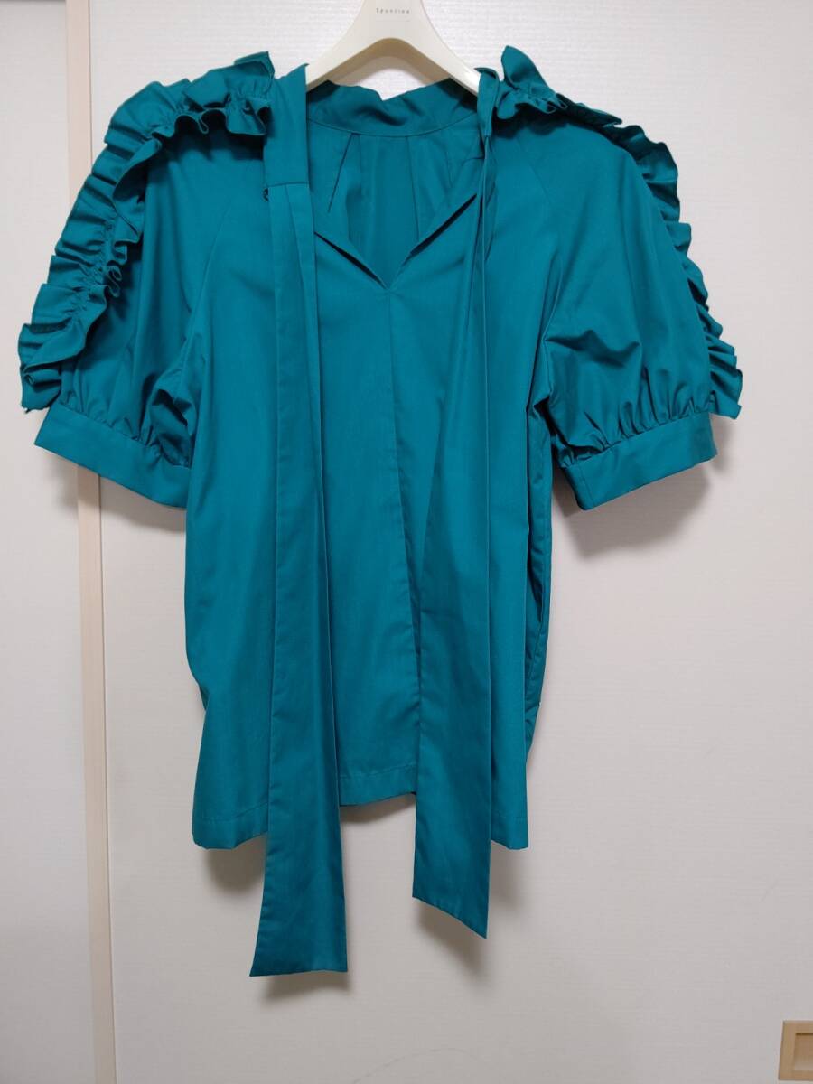 - USED そこそこ TIARA ティアラ 半袖 ブラウス Lサイズくらい 緑 エメラルドグリーン 送料無料