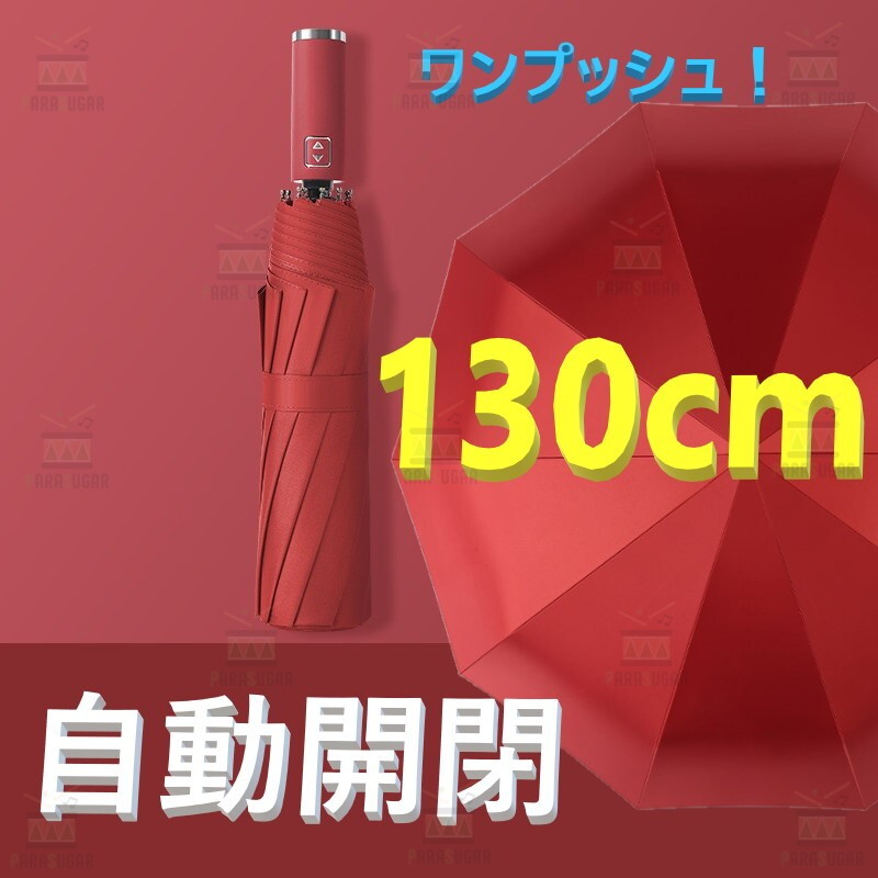 - 話題の 自動開閉 ワンタッチ 折り畳み傘 特大 130cm 10本骨 【F-266 レッド】 軽量 晴雨兼用 日傘 雨傘 梅雨 大きいサイズ