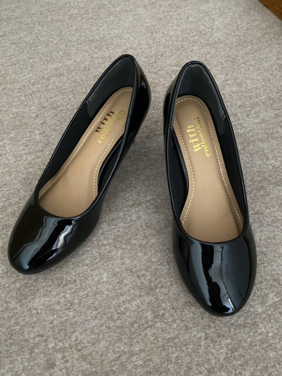 - 黒エナメル調、合成皮革パンプス Sサイズ22.5cm