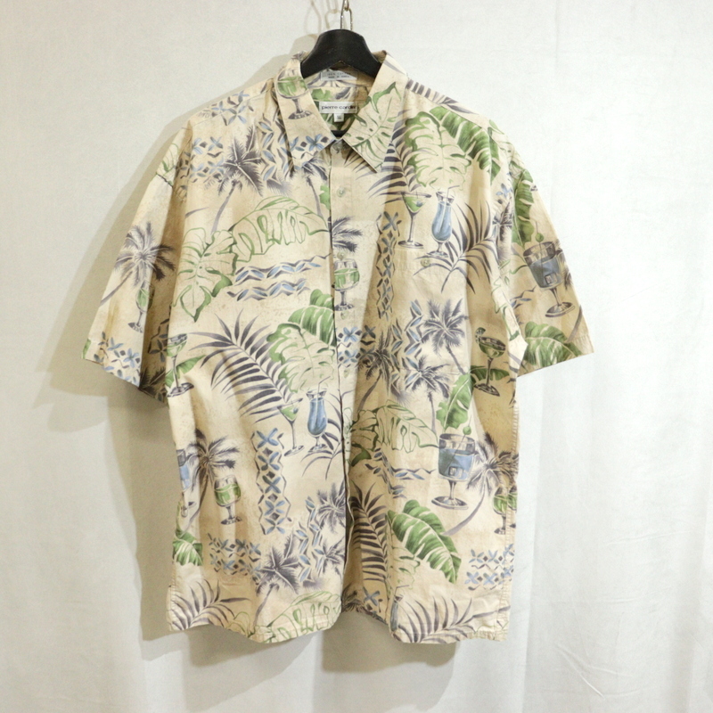 - T751 90sビンテージ ピエールカルダン 半袖アロハシャツ■1990年代製 表記XLサイズ ベージュ コットン ハワイアン カクテル ボタニカル