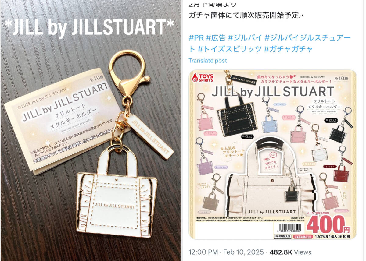 > 新品 JILL by JILLSTUART ジル バイ ジルスチュアート ガチャ フリルトート メタル キーホルダー バッグ チャーム 白 ホワイト