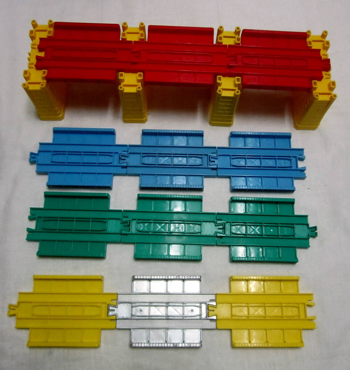 - プラレール ガーター橋 5色 12個 ブロック橋脚4個 赤 青 グリーン 黄色 銀