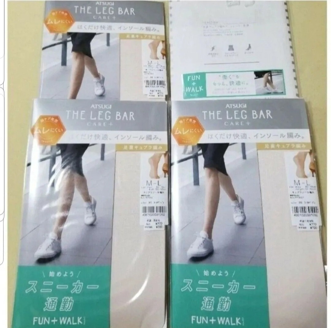 > ATSUGIアツギ THE LEG BAR CARE+ M-Lサイズ脚ケア発想 ストッキング パンスト 4足セット 定価3080円 コーラルベージュ