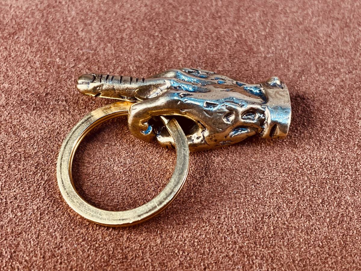 - 真鍮 キーホルダー中指 FUCK キーリング 無骨 反骨 二重カン E39