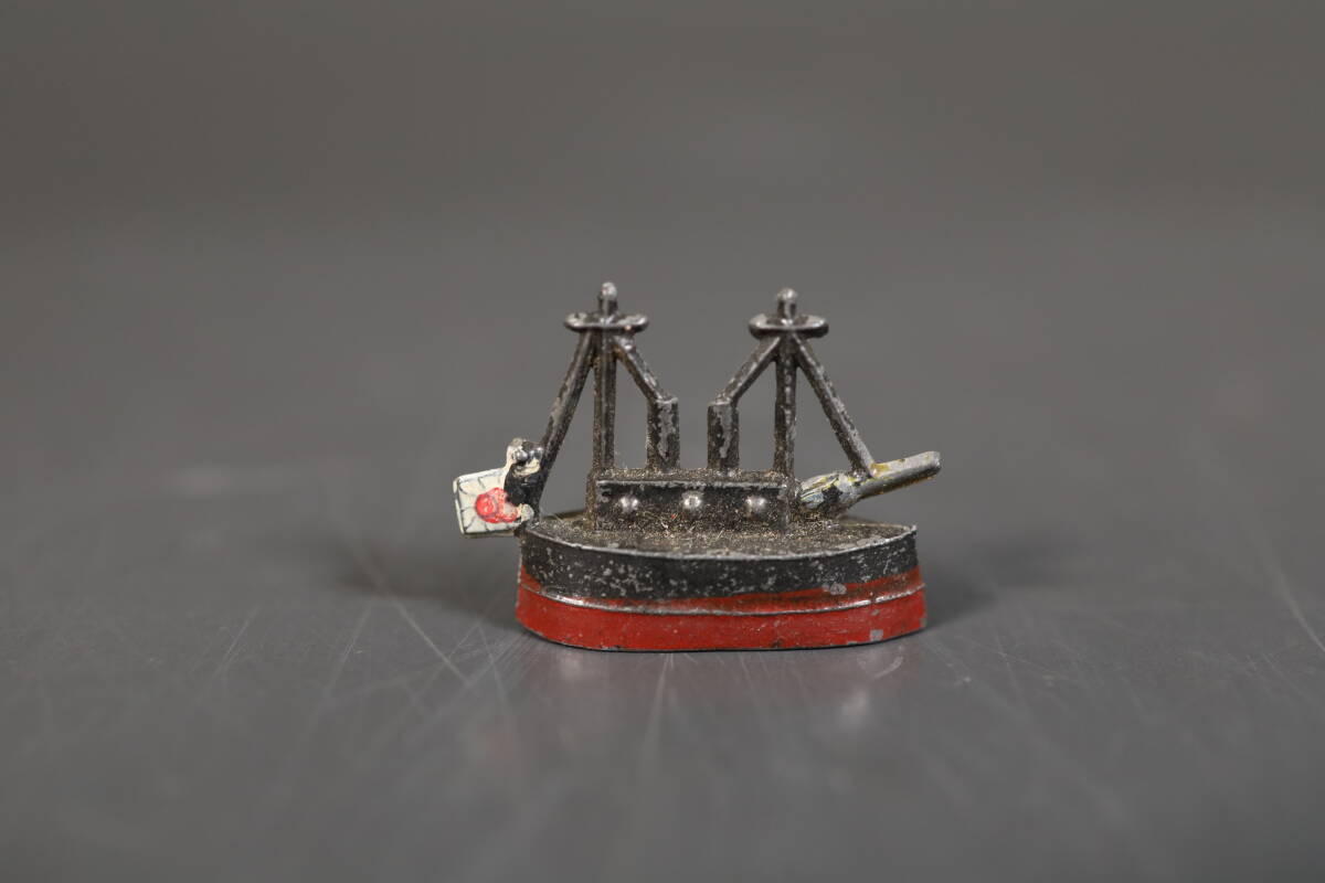 - 【和】(A2779) 時代古作 希少当時物 鋳物製軍艦置物 アンチモニー 玩具 食玩 グリコ