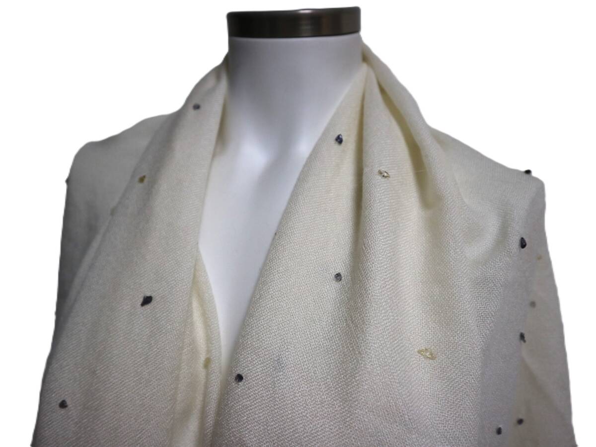 - 【即決】美品 LORO PIANA ロロピアーナ◆ふんわりソフト 変形ビーズ アイボリー 大判マフラー ストール カシミヤ70% シルク30% ta
