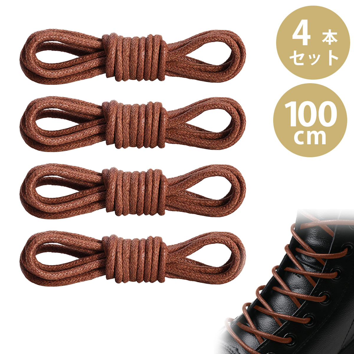 - 【2足入り】100cm 革靴 靴紐 ブーツ 紐 靴ひも ビジネスシューズ シューレース 丸紐 ワックス靴紐 5穴以上用(こうちゃいろ);J5592-2ps;