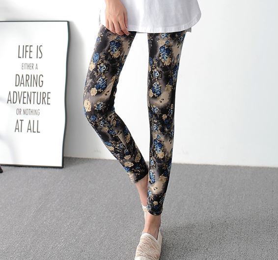 - レディース 薔薇 プリント レギンスパンツ 花柄 ローズ レギパン レギンスDJ958