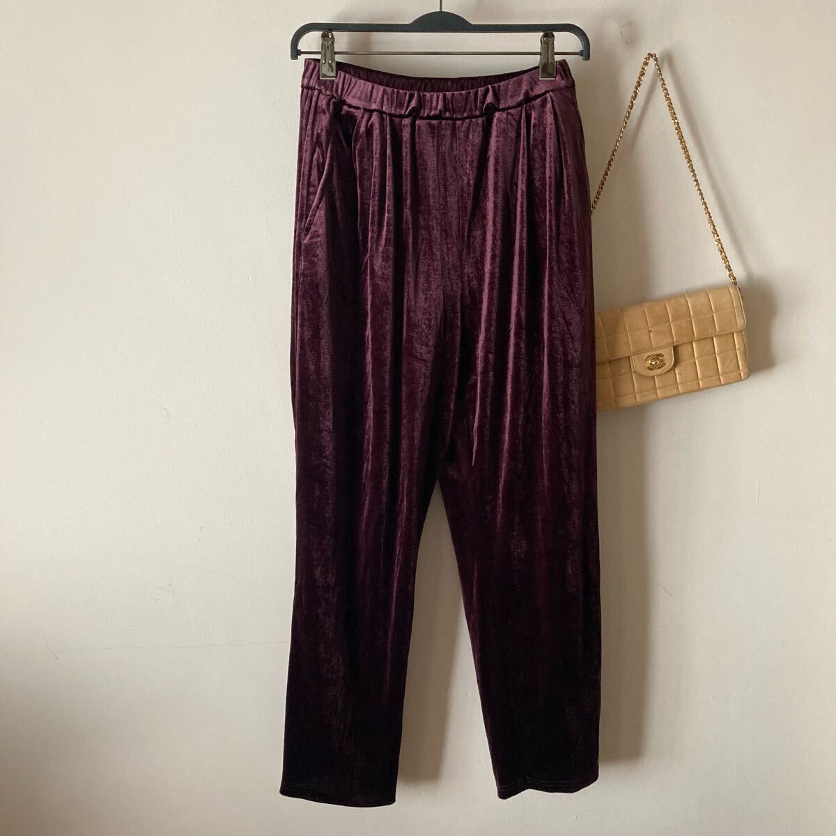 - アナザーエディション*上質ベロア ストレッチジャージー ウエストゴム イージーパンツ*バーガンディ