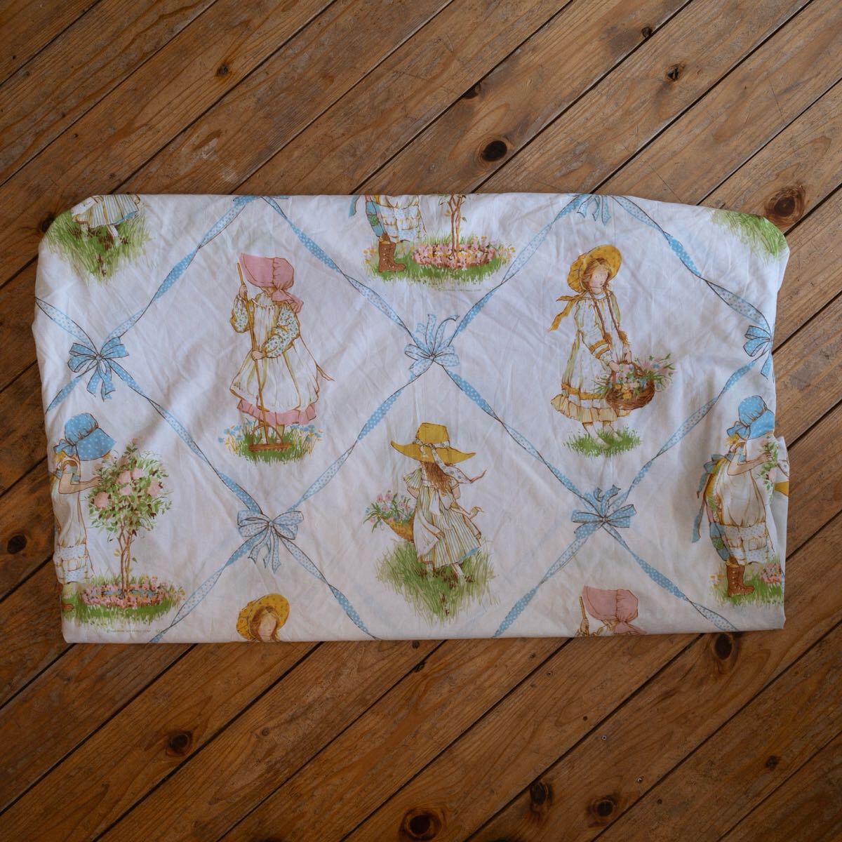 - USAヴィンテージ HOLLY HOBBY ホリーホビー ベッドシーツ イラスト レトロガール リメイク生地 素材 ボックスシーツ アメリカ仕入 B2723