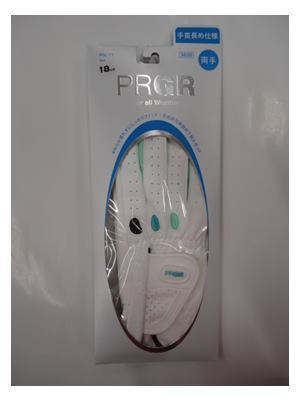 > ■手首長め仕様 !! PRGR 合皮 プロギア 両手レディースグローブ【18cm/ホワイト&グリーン】PGL-17W