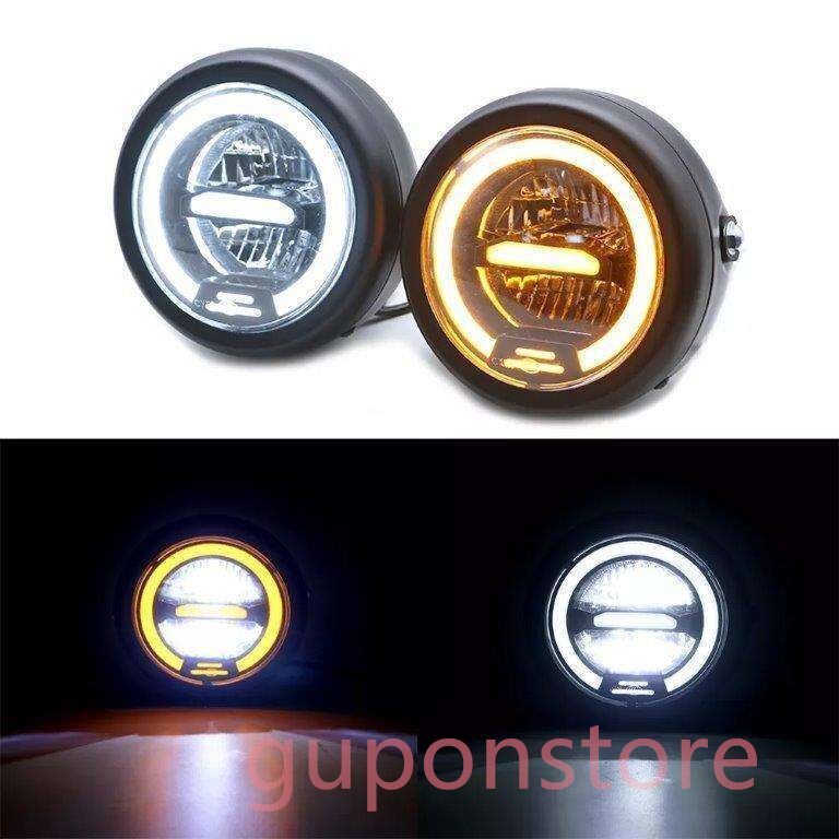 > オートバイレトロブラックメタル LED ヘッドライトランプ日中走行ヘッドライト CG125 GN125 カフェレーサーホ