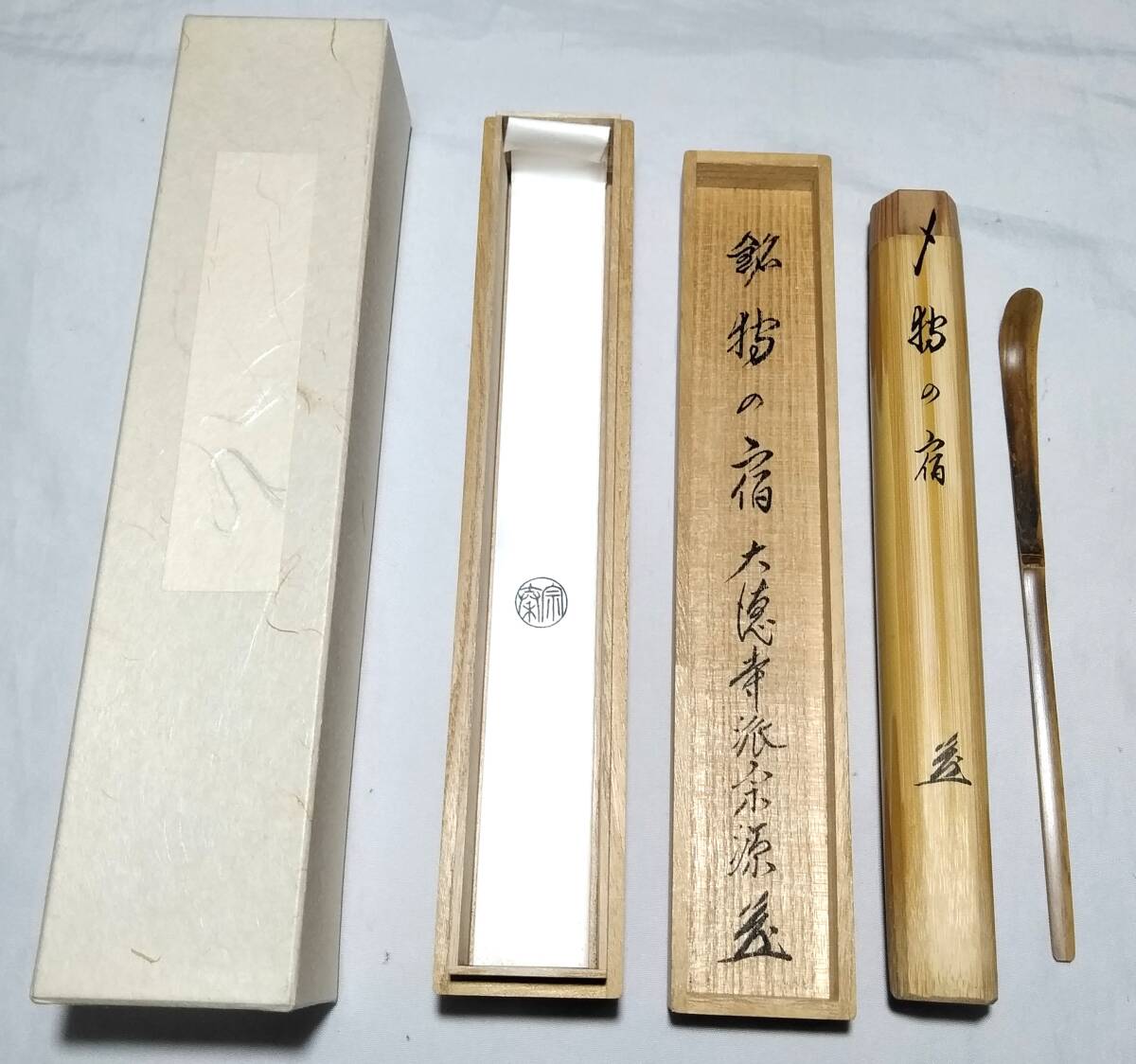 - 茶道具 浸み竹茶杓 銘「狩の宿」 大徳寺瑞光院 前田宗源老師書花押入り 美品!!