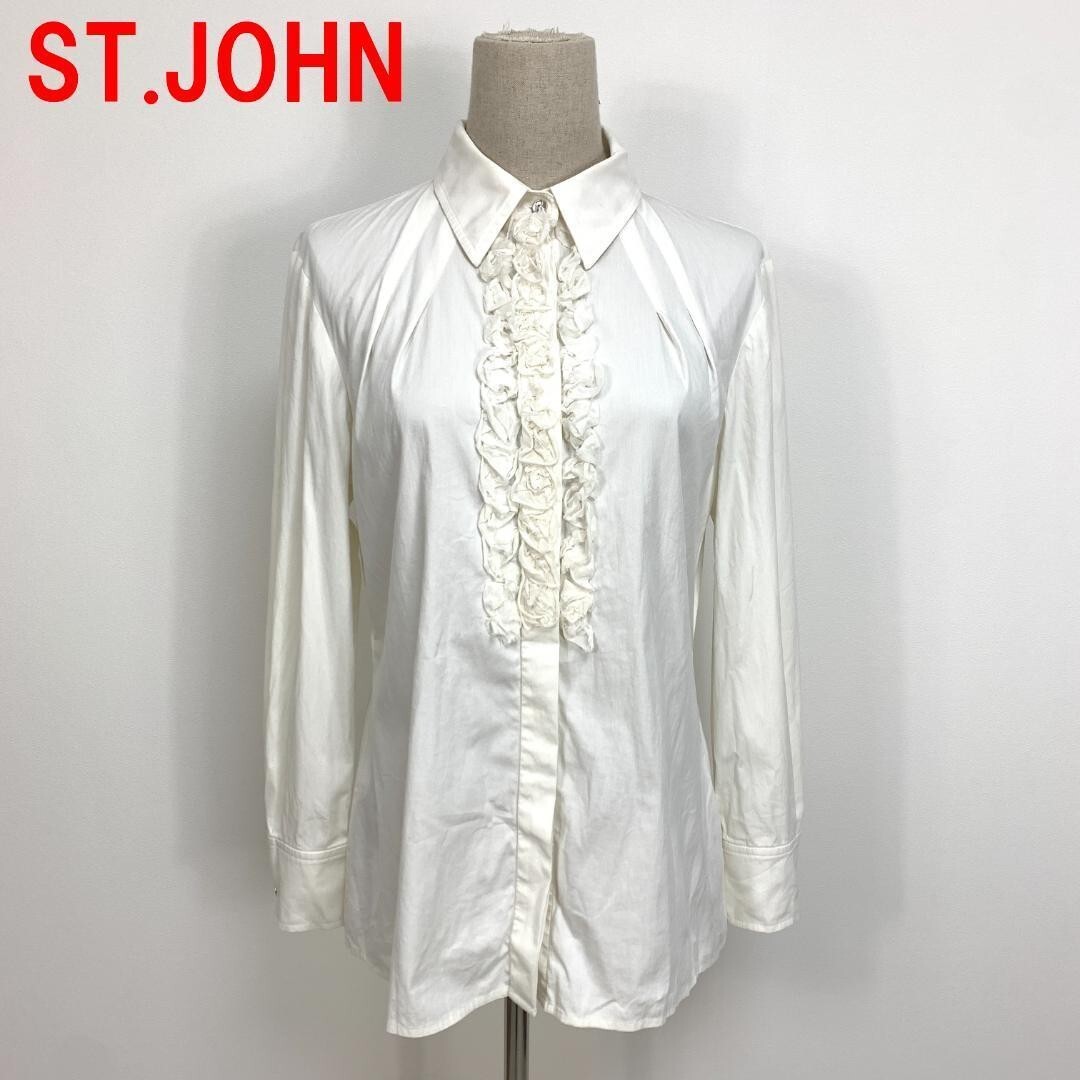 - A5878 セントジョン 長袖シャツ ブラウス 綿 フリル ST.JOHN コットン ホワイト装飾 白 4 M
