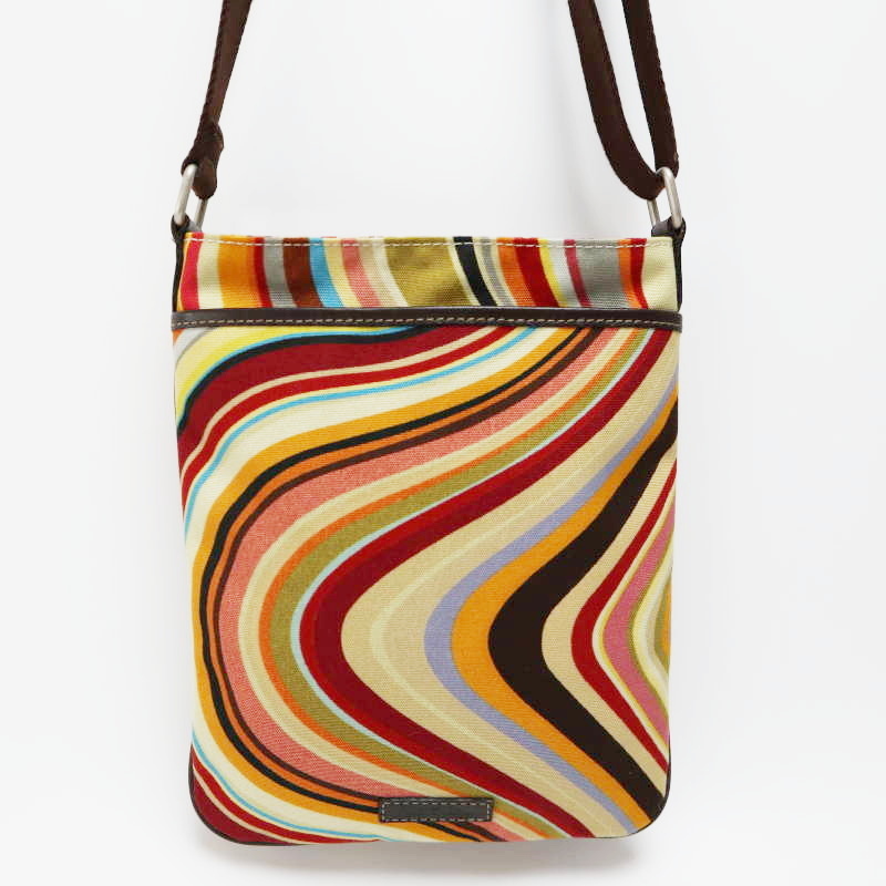 > M06-k005 Paul Smith ポールスミス マルチストライプ キャンバス/レザー ショルダーバッグ マルチカラー