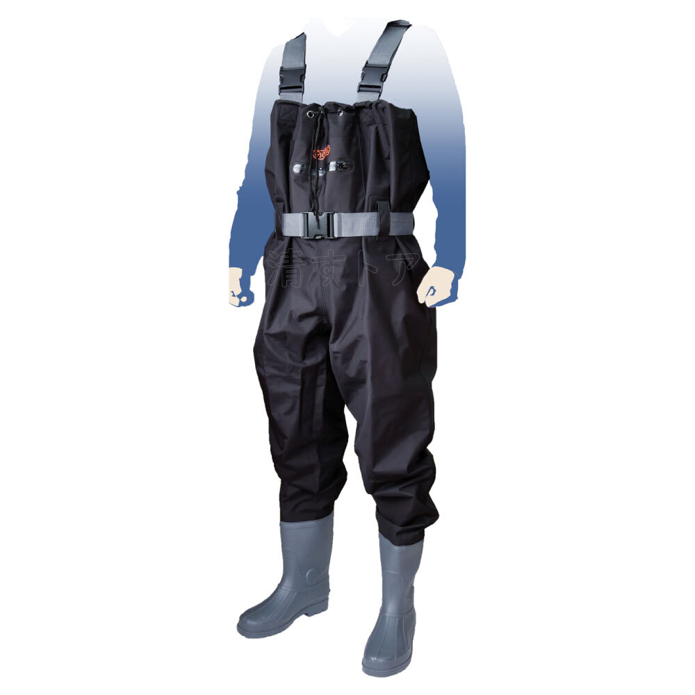 - チェストハイウェーダー ブラック Lサイズ(25.5cm~26.0cm) 胴付長靴 荘快堂 V-71