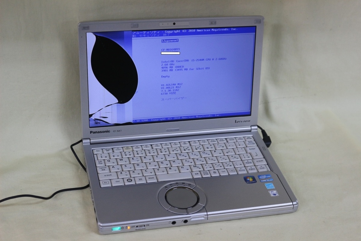 - ジャンク品ノートパソコン Panasonic Let's note CF-NX1 COREi5 メモリ4GB HDD無 12.1inchワイド カメラ内蔵 起動確認済 代引き可