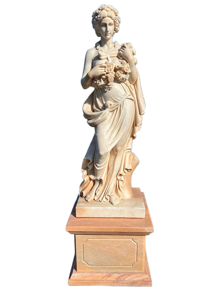 - 天然大理石彫刻 薔薇を抱えるヴィーナス(春) ピンク H212cm 大理石 オブジェ 置物 高級 インテリア 天然石 美術品 洋風 ラグジュアリー 庭