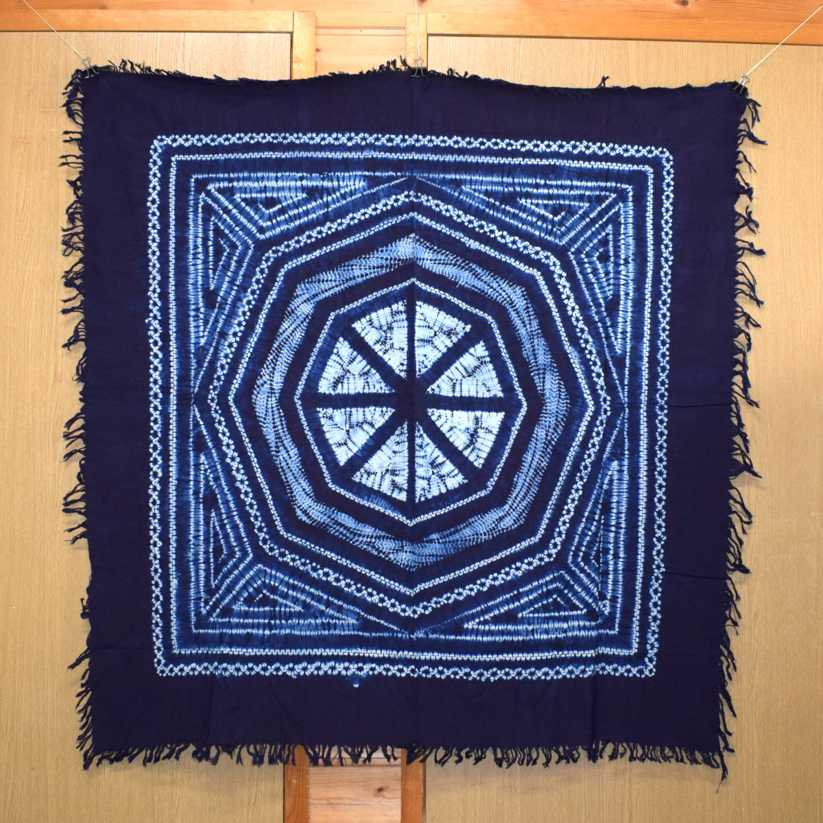 - 藍染 テーブルクロス フリンジ タペストリー マルチカバー 横幅約100cm 縦幅約103cm 綿 【kk2-1】