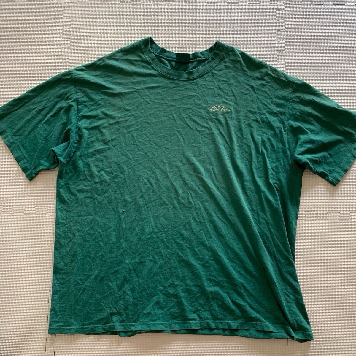 - 90s【L.L.BEAN × HARBORSIDE GRAPHICS】筆記体ロゴ刺繍 Tシャツ GREEN XL程度 おそらくUSA製 ピグメント