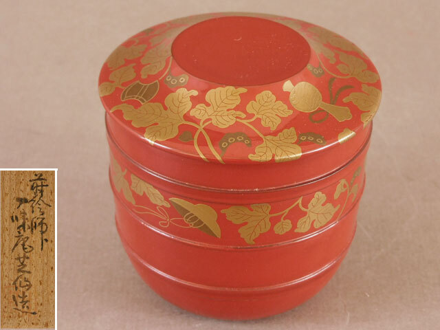 - 蒔絵師 芝仙 唐草蒔絵 朱唐笠 棗