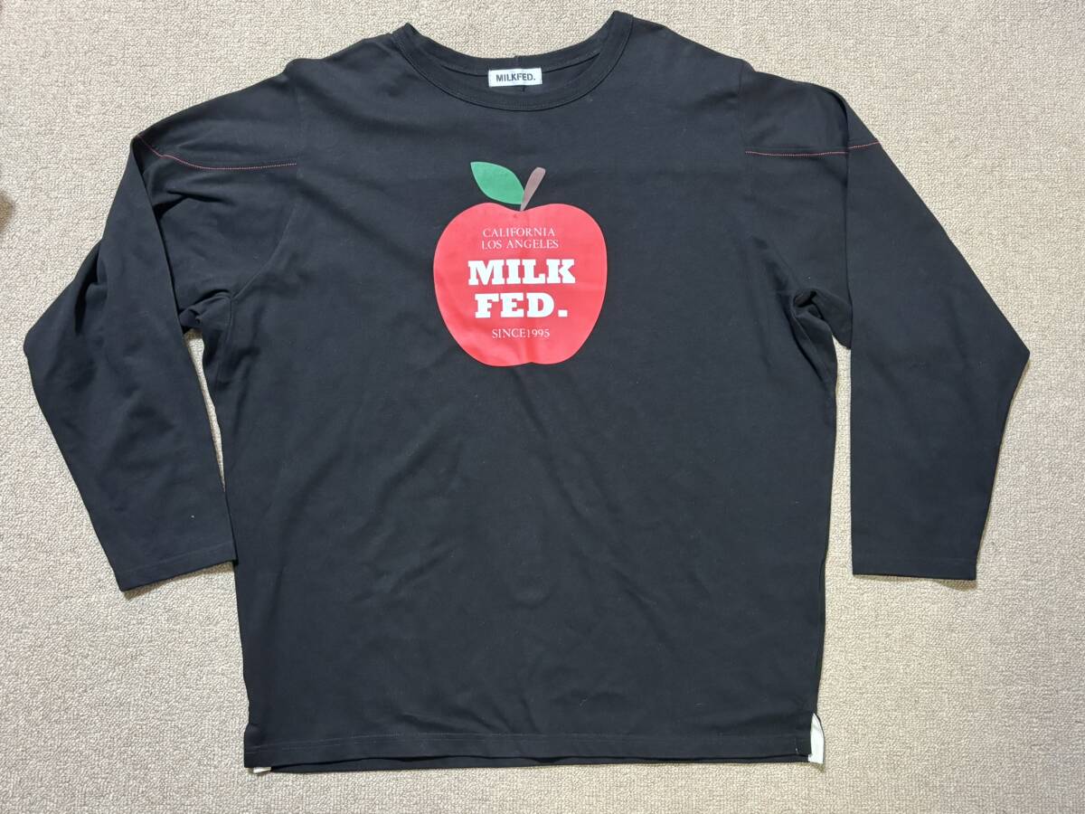 > 美品 MILKFED CONTRAST STITCH FOOTBALL 長袖 Tシャツ ミルクフェド ロンT 黒 ブラック シンプル アップル柄 フリーサイズ/EH